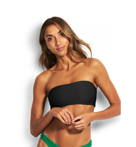Tube Bikini Top-Blk from Seafolly. Retro style Boob Tube in one piece. Made from two layers of ribbed fabric with soft side boning. No soft cups, straps or clips.