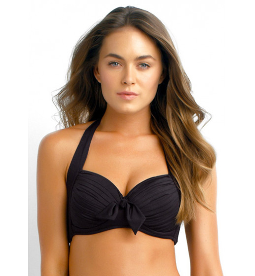 Soft cup halter top from Seafolly in their black goddess fabric. This is a great top because it fits a large range of different body shapes. Nice box pleating across the front.