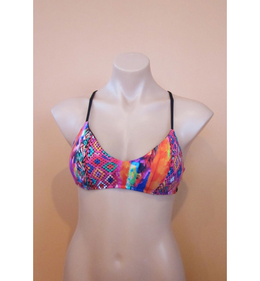 Mexican Summer bikini top from Seafolly. Removable soft cups with thin straps. Good active top that will not come off.