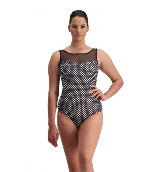 Polka Dot Mesh Neck Swinsuit from Quayside. Soft cups with a Mesh yoke.