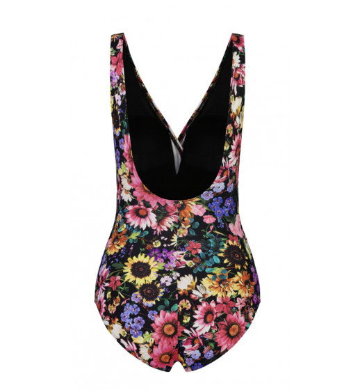 Drawstring cross over swimsuit from Quayside. Soft cups set in a shelf bra with front power mesh. Side drawstring with side gathering.