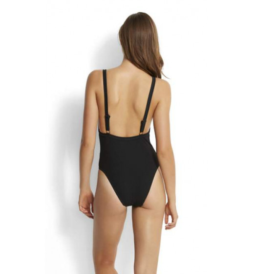 Inka Rib Swimsuit from Seafolly. Internal soft cups with adjustable straps and front lining. This suit has a higher leg line than most we have stocked for a while. Out of the eighties. Material is a vertical rib.