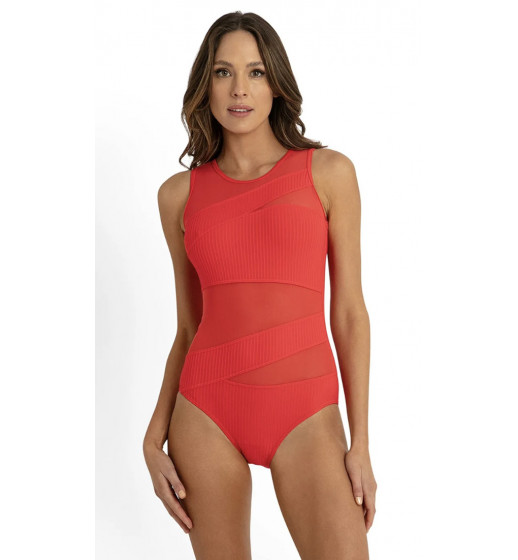 Reset Cross Bow SwimsuitT. Classic Sunseeker mesh one piece. This time in Tangerine colour. No soft cups but still ok up to a C cup.