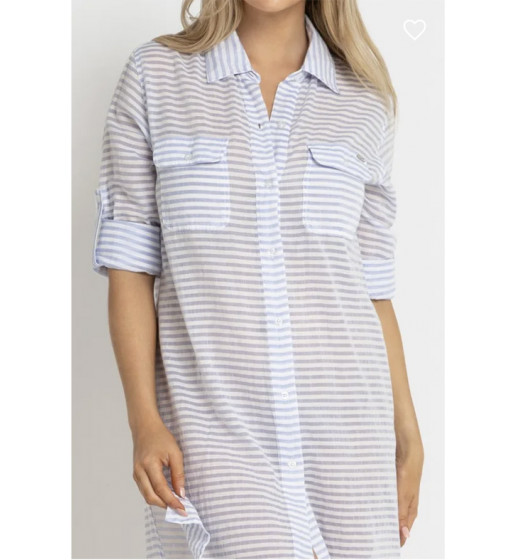Fresh Button through Shirt from Jantzen. Nice summer cover up. Lilac/blue and white 100% cotton with two front pockets. Great for holidays.
