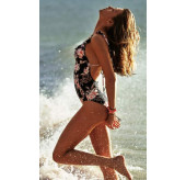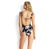 Let Pacifico take you across the sea where vintage Hawaiian florals in peach are pared back with black or Atlantic blue hues